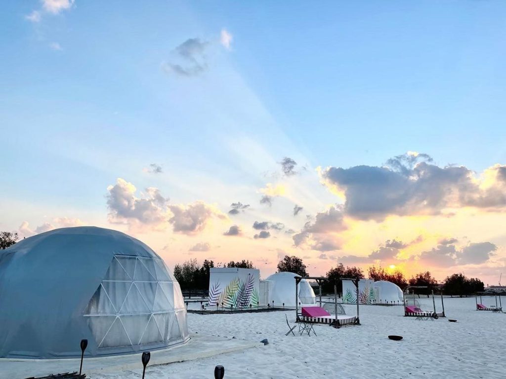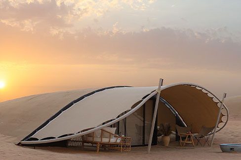 Located in the heart of the Dubai Desert Conservation Reserve (DDCR), The Nest offers a "zero-trace" version of desert camping UAE. Designed by architect Gianni Ranaelletti, these "nests" are camouflaged into the dunes, offering a private, organic feel.